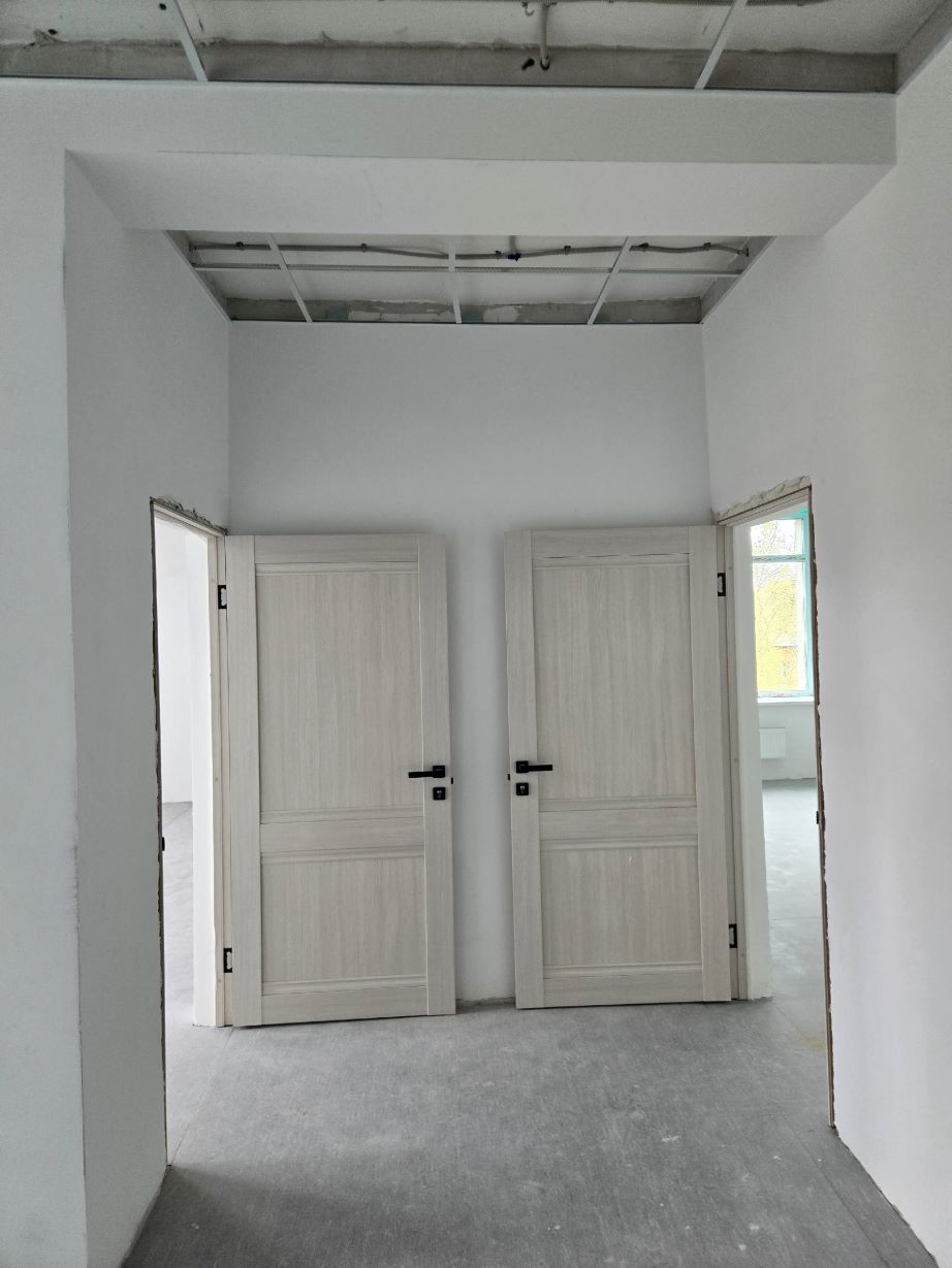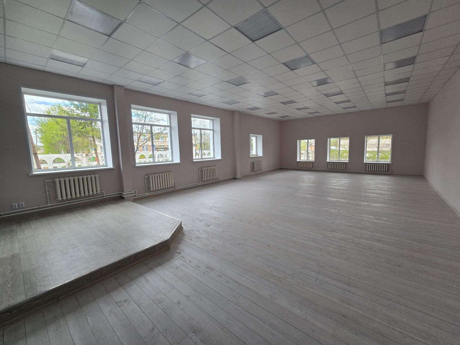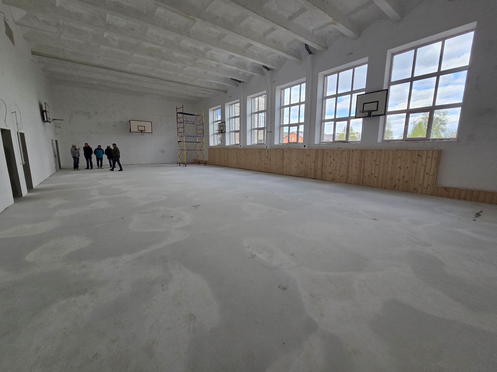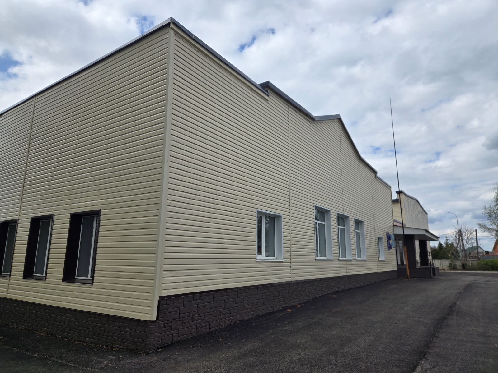 В работе: монтаж вентилируемого фасада, укладка линолеума, монтаж межкомнатных дверей, установка сантехники, подготовка стен под финишное покрытие, монтаж системы отопления и вентиляции в пищеблоке.